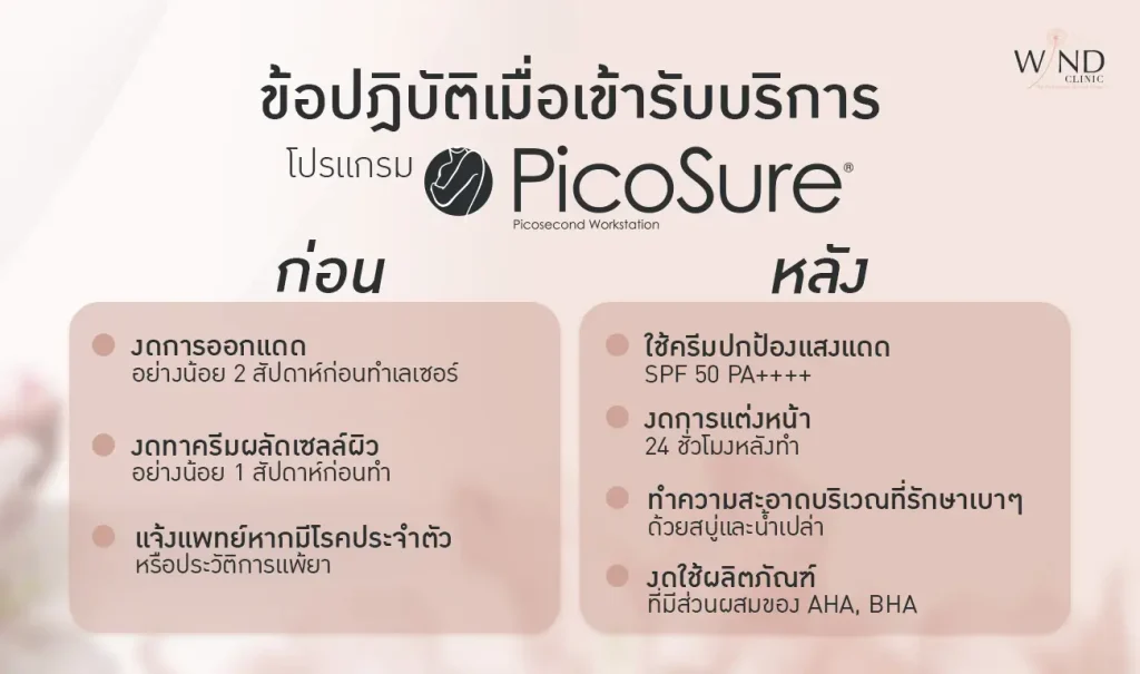 ก่อนทำเลเซอร์โปรแกรม Picosure ควรปฏิบัติตามคำแนะนำ: